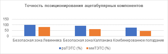 Рис. 1. Точность позиционирования ацетабулярных компонентов после раТЭТС (n=50) и ммТЭТС (n=50)