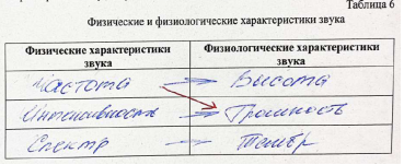 Рис. 1. Пример выполнения студентами-первокурсниками задания ВСР на выделение физических и физиологических характеристик звука