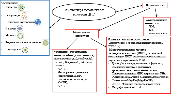 Одним из эффективных направлений, развивающихся в последние десятилетия в диагностике, тераностике и лечении заболеваний ЦНС, являются нанотехнологии. Наноматериалы действуют на молекулярном уровне, могут одновременно поддерживать высвобождение лекарств, повышать их биодоступность, доставлять несколько агентов к мишеням. Наноматериалы являются отличным кандидатом для разработки стратегий обхода гематоэнцефалического барьера (ГЭБ) [13].