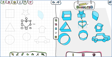 3. Знакомство с онлайн-сервисом Doodle3D Transform, работающим через браузер и позволяющим осуществить переход от 2D-рисунка к 3D-модели. Создание базовых геометрических форм и преобразование их в объемные фигуры, развивая объемное воображение у обучающегося (рис. 1).