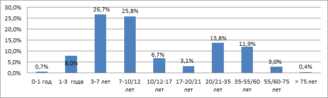 Рис. 1. Возрастная структура жителей индустриальных центров, обратившихся для проведения паразитологического обследования