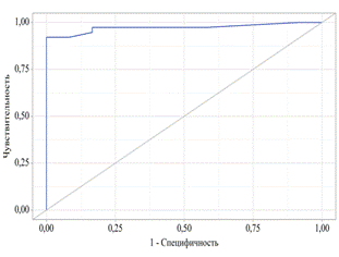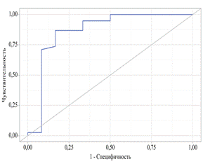 Рис. 4. ROC-кривая значений PI в ЗМА плода