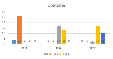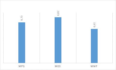 Рис. 3. Дооперационное распределение градаций жировой дегенерации согласно классификации Goutallier в m. psoas (mPS), m. erector spinae (mES) и m. multifidus (mMF)