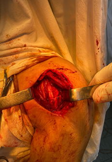 Рис. 3. Интраоперационная картина фиксированного короткого сухожилия двуглавой мышцы к длинному сухожилию