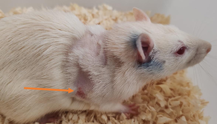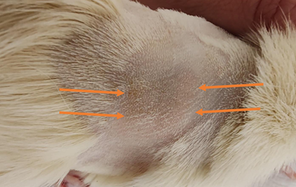 Рис. 2. Покраснение кожи и расчесы у особи из группы2 после процедуры воздействия RF-микроиглами. Примечание: рисунок составлен авторами по результатам данного исследования