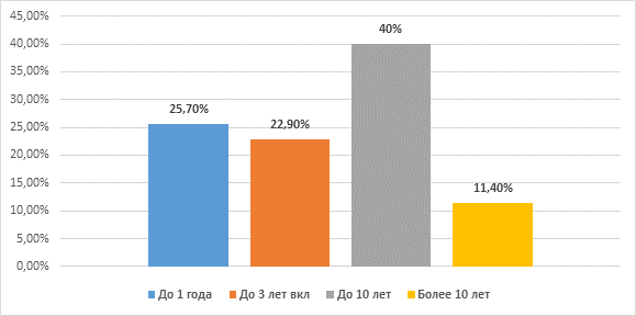 Рис. 1. Длительность заболевания ВЗК у наблюдаемых пациентов.