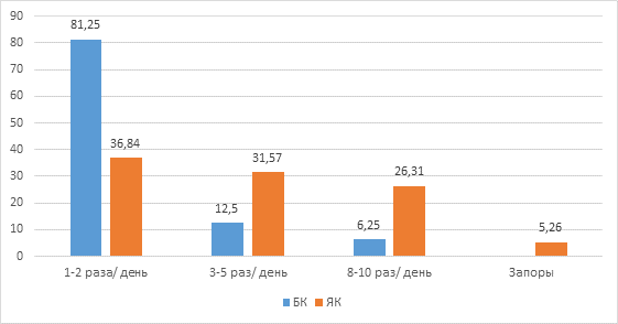 Рис. 5. Частота стула у наблюдаемых пациентов.