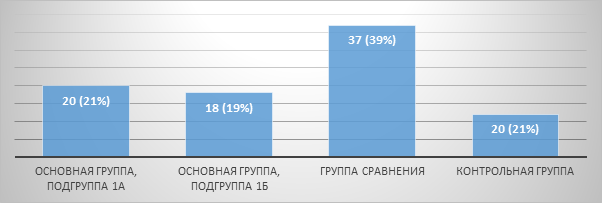 Распределение пациентов по количеству в группах представлено на рисунке 1.