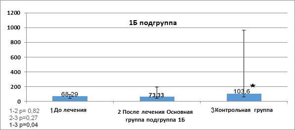 Как видно из данных рисунка 3, после проведенной терапии было выявлено повышение показателя TRAIL (73,33 (30,73; 144,7) в подгруппе 1Б.