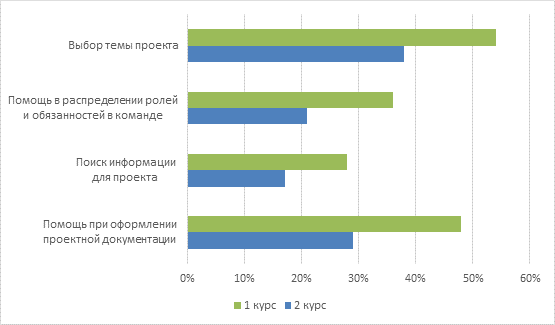 Рис. 1. Потребности студентов в помощи при осуществлении проектной деятельности