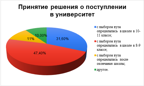Доминирование цифровых каналов коммуникации как основного источника информации подчеркивает критическую важность активного и стратегически выверенного присутствия университета в онлайн-среде, особенно в социальных сетях, очень важно систематизировать и интегрировать профориентацию в различные каналы: школьное сотрудничество, открытые дни, консультирование.