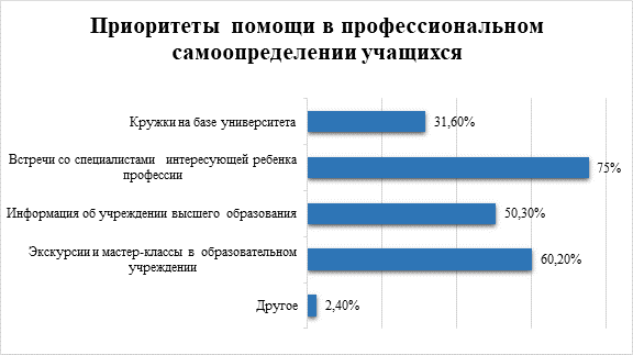 Данные результаты опроса подтверждают, что основная целевая аудитория профориентационной работы – это обучающиеся выпускных классов средней школы, но формирование интереса к предметной деятельности, развитие интереса к миру профессий можно и нужно развивать с начальной школы [12, 13].