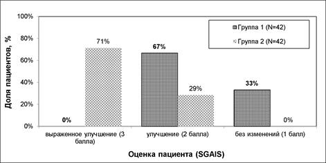 На исходном уровне две группы пациентов статистически значимо не различались по большинству клинических характеристик и по всем оцениваемым показателям (p>0,05; таблица).